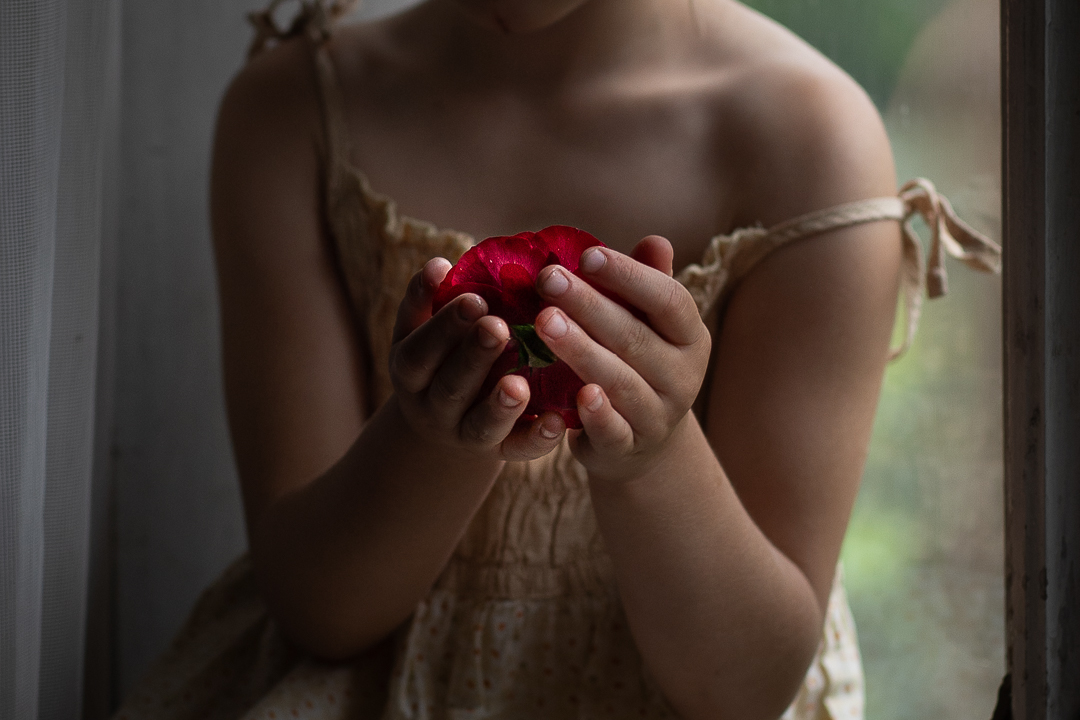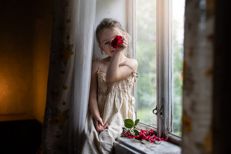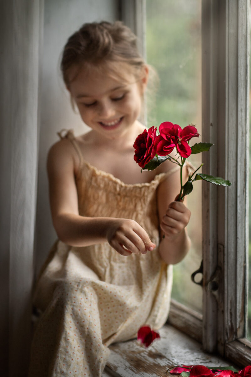 Wąchanie kwiatów przez małą dziewczynkę jest jak podróż w krainę cudów,